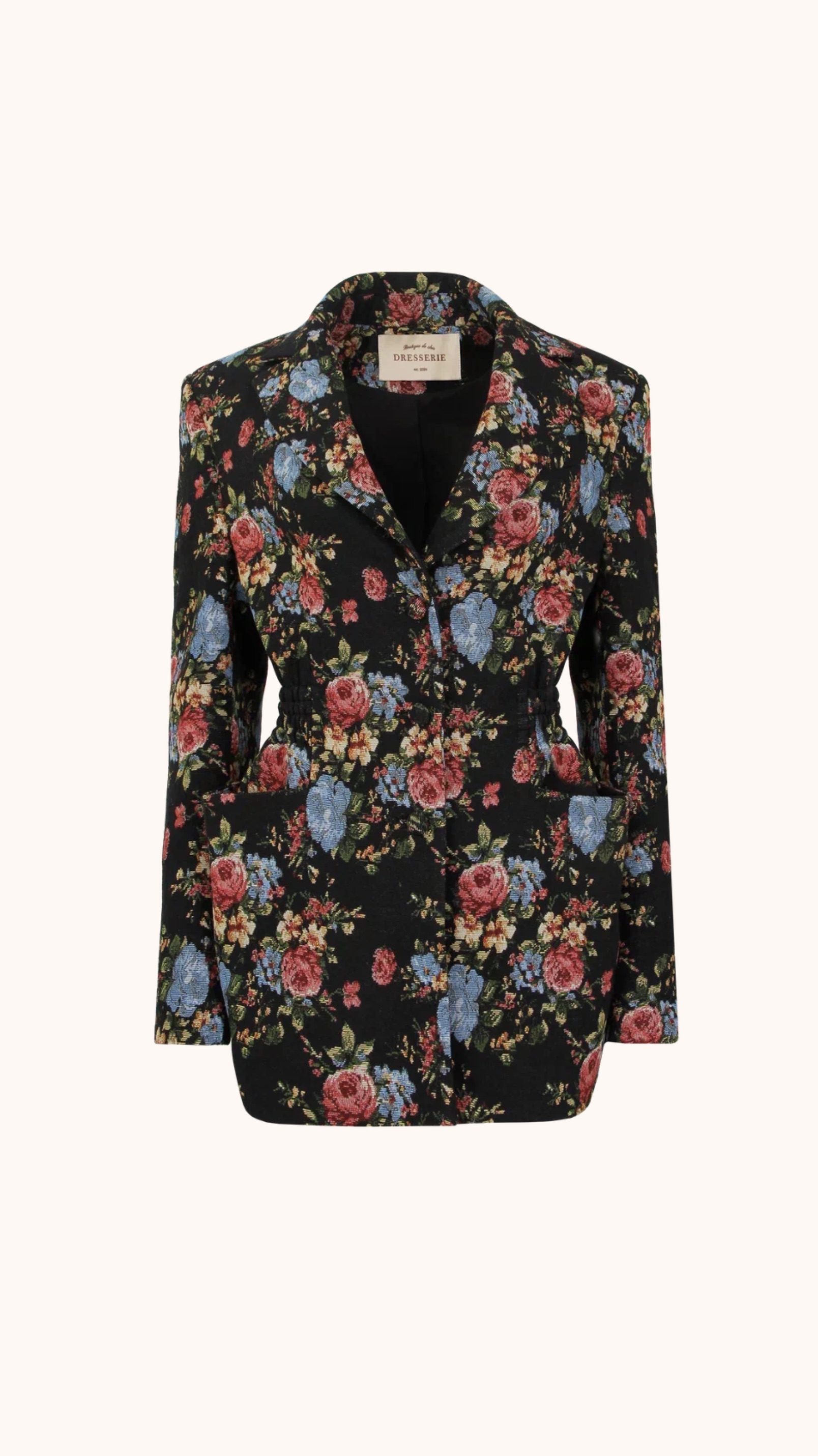 Приталенный жакет из плотного жаккарда с цветочным принятом
